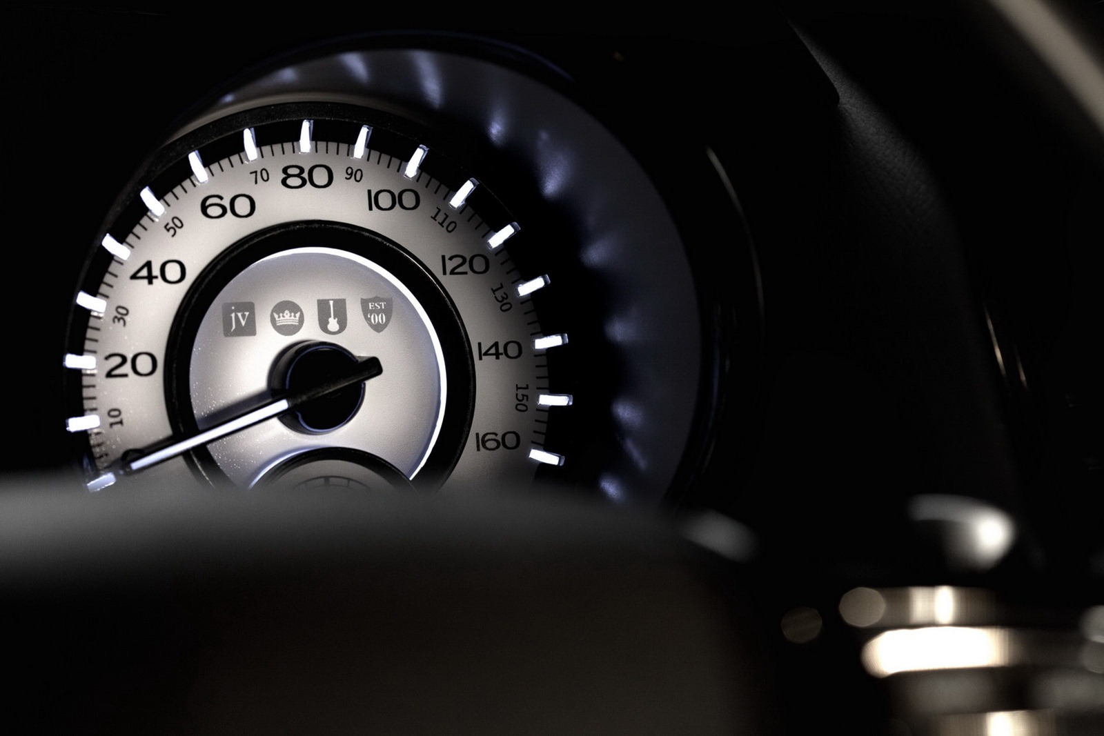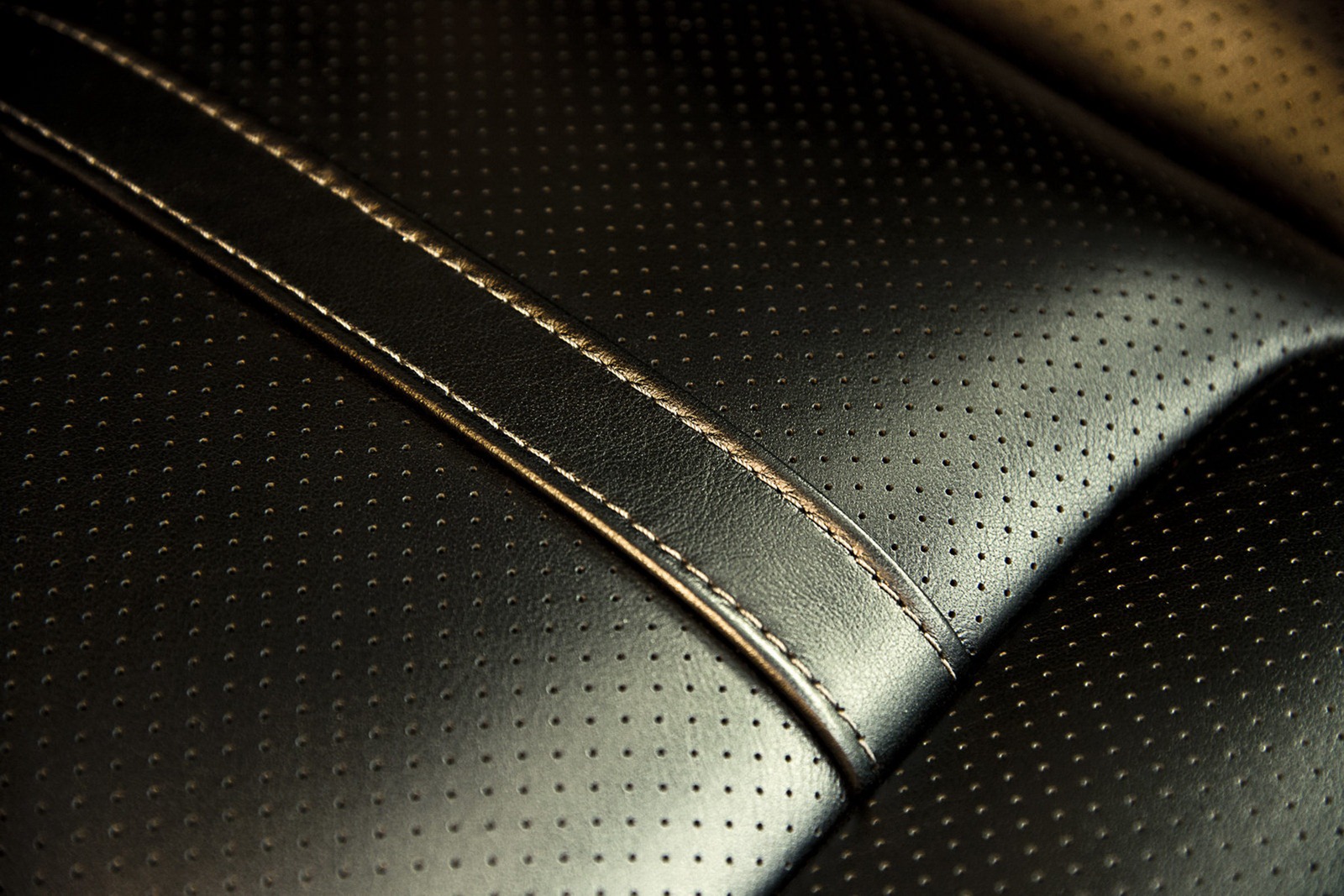 Interior appointments include Pewter Metallic leather seats tailored with unique Diesel Gray and black pattern Varvatos stitching and logos, gauge cluster and clock with Pearlescent White face and Charcoal Black Metallic bezels, a hand-stitched heated steering wheel with Diesel Gray thread and Titanium Chrome accents, plus wood and gloss black trims.