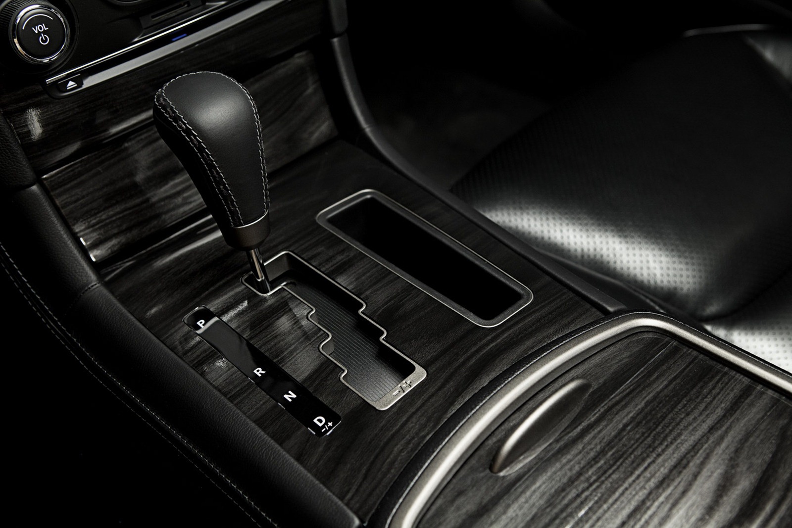 The interior, including the power seats and steering wheel, comes in a choice of monotone black or exclusive Dark Mocha with black Poltrona Frau “Foligno” leather, and features hand-sanded wood, which Chrysler says was once limited "to some of the most exotic Italian luxury cars"